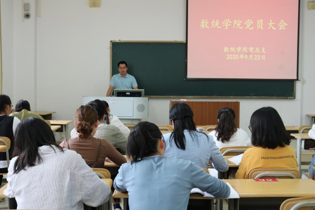 9月23日下午,数学与统计学院党总支部在格致楼709教室召开党员大会专题学习《习近平谈治国理政》第三卷。党员大会由党总支部副书记张明进主持,全体党员参加。