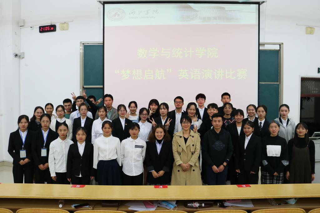 为营造新葡萄英语学习氛围,丰富校园文化。10月9日晚,数学与统计学院于格致楼负102教室开展“梦想启航”英语演讲比赛。物理与机电学院团委书记王勇亮、化学与生物工程学院团委书记王联芳、数学与统计学院辅导员俞茗和学院各班级学生代表参加了此次活动。
