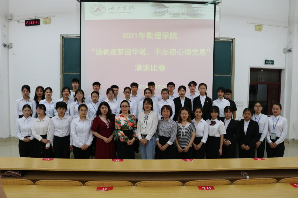 为庆祝中国共产党成立100周年,培育浓厚的党史学习教育氛围。5月7日晚,新葡萄8883官网AMG于西区格致楼负102教室举行“扬帆逐梦迎华诞,不忘初心颂党恩”主题演讲比赛。人工智能与制造学院团委书记王联芳,新葡萄8883官网AMG办公室主任郭英莉、团委书记罗曼、辅导员姚宁、俞茗担任此次比赛评委。