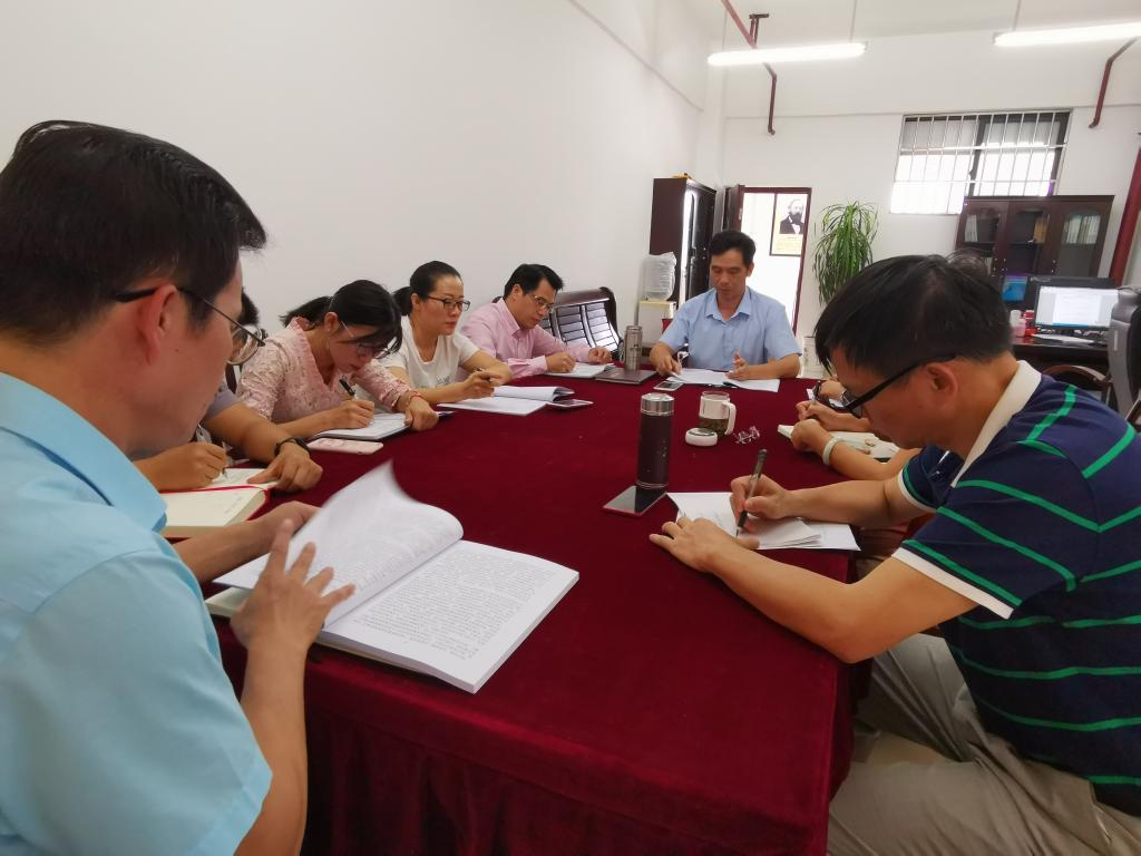 2019年9月25日,数统学院理论中心组于格致楼802办公室开展学习习近平关于民主集中制的重要论述专题学习会,会议由学院党总支部书记黄星寿主持,学院理论中心组全体成员参加学习会。