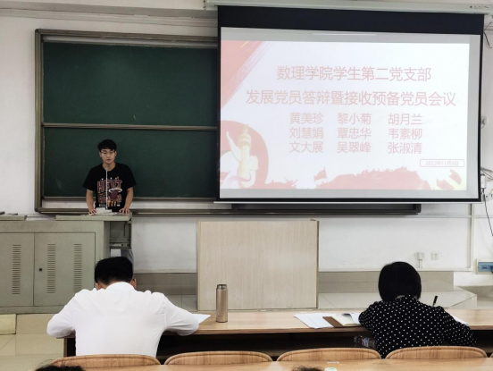 新葡萄8883官网AMG学生第二党支部于11月9日在东区弘毅楼2-502教室召开发展党员答辩暨接收预备党员会议。本次会议由新葡萄8883官网AMG学生第二党支部支部书记廖丹婵主持,党委副书记石宁、办公室主任罗曼出席本次会议,新葡萄8883官网AMG学生第二党支部全体党员同志、预备党员、积极分子及发展对象参加此次会议。