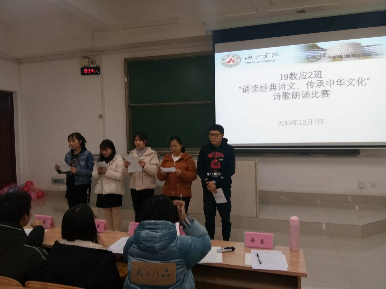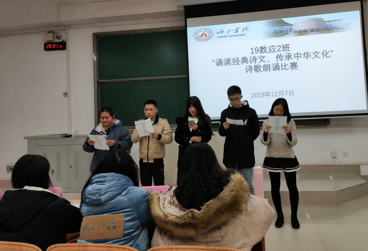 12月7日,19数应2班在弘毅楼2-502教室开展诵读经典诗文,传承中华文化。
