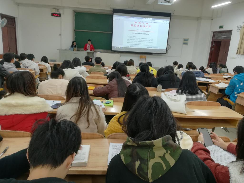校训是学校的躯壳,校歌是学校的精气神。为了让同学们更好的理解我们学校的校歌、校训。17数应班于12月10日晚19:30开展了讲校训、唱校歌主题班会,本次会议由班主任银冬冬老师主持并主讲,17数应班全体同学参加会议。
