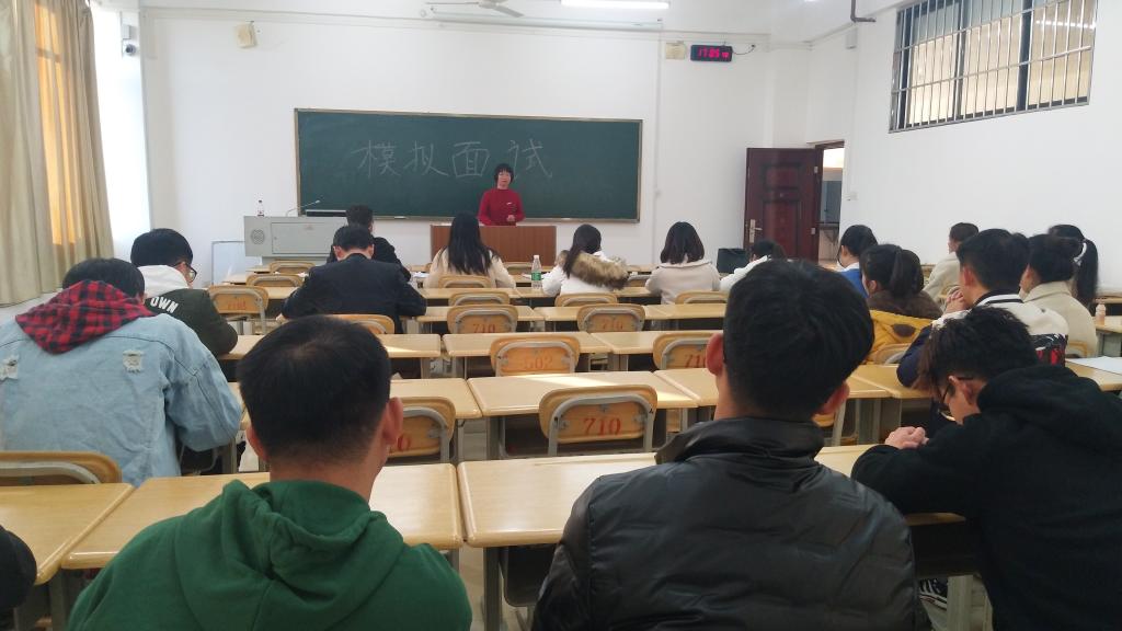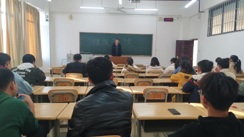 为增进同学们对求职面试的系统全面的了解,培养大四毕业生在面试中的应试能力,提高面试时的心理素质,学习面试技巧、礼仪、程序,从各个方面掌握求职面试的要求,以便同学们能够在面试中脱颖而出。12月10日下午15:00,16经济统计学1班在格致楼708和710教室举行了一场别开生面的模拟面试活动。本次模拟面试活动由16经济统计学1班辅导员罗曼老师和班委组织开展。