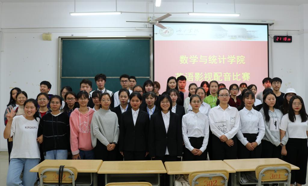 11月15日,数学与统计学院于格致楼301教室举办英语配音大赛,本次大赛的评委嘉宾有外国语学院刘宇群、吴宜康、张卓遴、莫惠清、数统学院团委、学生会彭美云、蓝梦婷,各班级代表观看比赛。