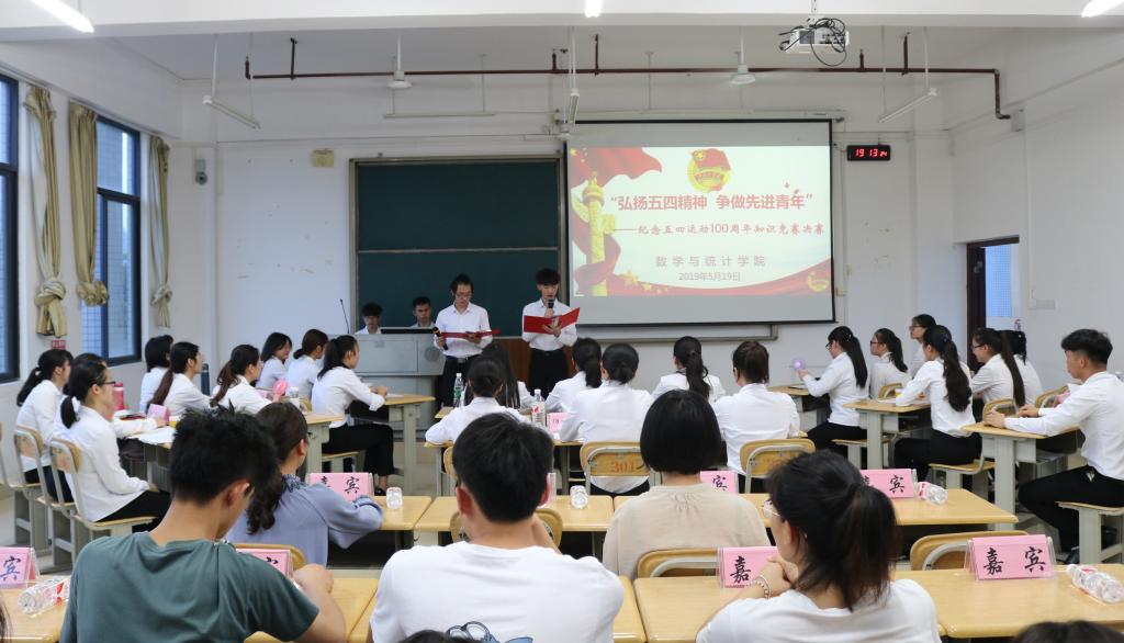 为纪念五四运动100周年,弘扬“爱国、进步、民主、科学”的五四精神,激励学生树牢“四个意识”,坚定“四个自信”,自觉做到“两个维护”。数学与统计学院于5月15日-19日举办“弘扬五四精神,争做先进青年”纪念五四运动100周年知识竞赛。