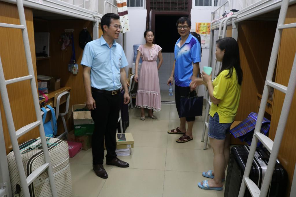 6月28日晚,数统学院党总支部书记黄星寿、院长罗日才、党总支部副书记张明进一行深入2019届毕业生宿舍,看望慰问新葡萄2019届毕业生。