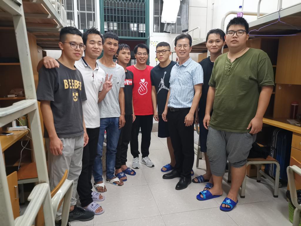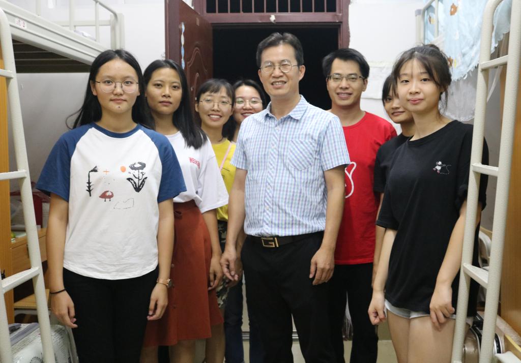 2019年9月24日,为及时了解新生的入宿情况,进一步做好新生入学教育工作,帮助新生尽快适应大学生活,新葡萄院长罗日才、党总支副书记张明进、团委书记罗曼及2019级各班班主任老师深入新生寝室,探访慰问2019级新同学。