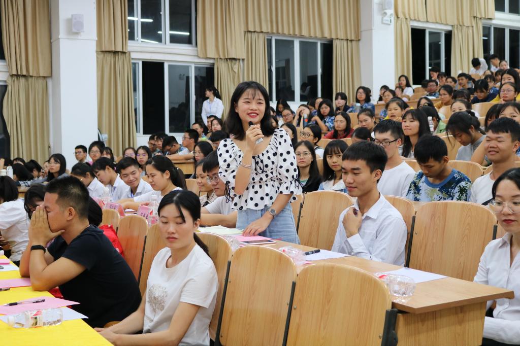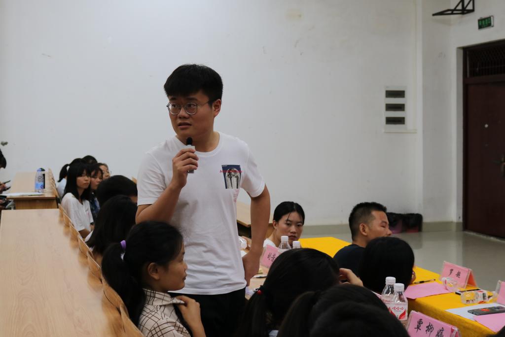 交流会上,16、17级的优秀学生代表汤成业、谭刘青、覃柳婷、麦金丽、刘芳芳等五位同学分别与新生们分享了自己的大学生活,他们从学习、工作、生活等不同角度给新生们提供了自己的经验,也对新生提出了鼓励。随后,张明进老师做总结发言,他强调新生们一要树立远大的目标,要志存高远;二要学会共处,学会交际;三要学会学习,勤奋好学,祝福2019级新同学能在大学四年中不断成长,练就过硬技能,成为栋梁之才。