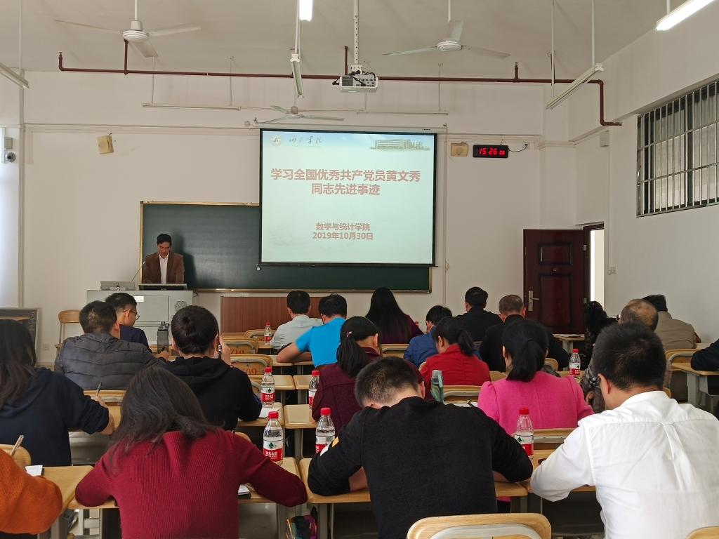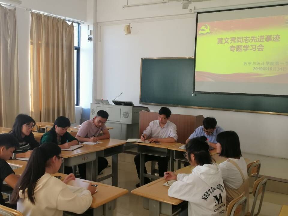 为深切缅怀黄文秀同志,积极贯彻“不忘初心、牢记使命”主题教育精神,10月29-31日,数学与统计学院在全院师生范围内组织专题学习黄文秀同志先进事迹。