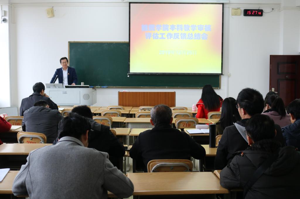会上,罗日才向大家传达了学校本科教学工作审核评估专家组意见反馈会的主要内容,并对反馈会议的重要意义进行了解说。他表示,审核评估期间,全院师生以强大的凝聚力和对学校高度负责的敬业精神完成了各项评估任务,保证了本次评估工作的顺利开展。审核评估的根本方针在于“以评促建、以评促改、以评促管、评建结合、重在建设”,希望通过本次审核评估让大家认识到日常教学活动中的不足,以精益求精的态度和对本科教学更强的责任心严格要求自己,推动新葡萄教学、管理更上台阶,同时也为我校整体转型发展做出应有贡献。