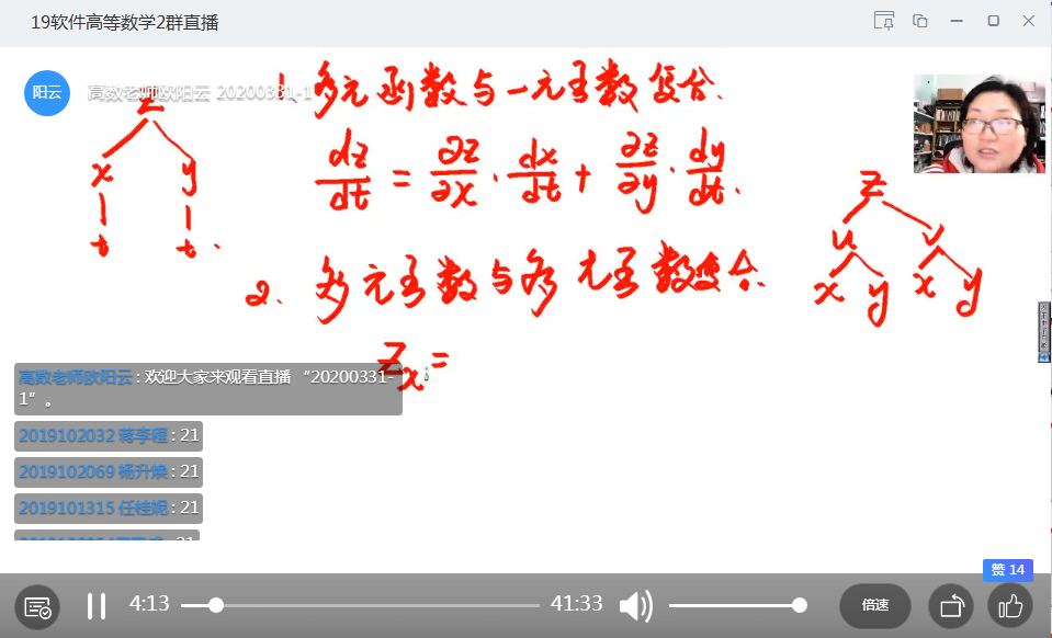 《高等数学》课程因其需要较多的板书推导和师生互动的特殊教学方式,在本次线上教学活动中也受到了极大的考验。如何有效利用现代化信息手段和现有资源切实有效开展在线教学,成为摆在团队面前的重要课题。早在线上教学的准备阶段,数统学院多次组织课程教学改革团队成员就疫情影响下如何利用钉钉、雨课堂等授课平台开展线上教学、如何针对不同学院学生需求进行授课等问题进行了深入地集体研讨。同时,团队教师还亲身体验感受不同平台的优势及不足,做足做好前期调研准备工作。在线上教学具体实施过程中,团队成员根据不同学院学生的需求和特点精准施策。克服实际困难,充分利用手写板等直播设备确保课堂直播中定理推导、典型题例讲解等板书设计不受影响,同时师生利用腾讯会议、QQ群、雨课堂、钉钉等网络平台和课后一对一交流解惑等多层次开展互动交流,进行了行之有效的线上授课。在线教学实际开展的几周内,团队教师的敬业精神和教学效果得到了同学们的一致好评。