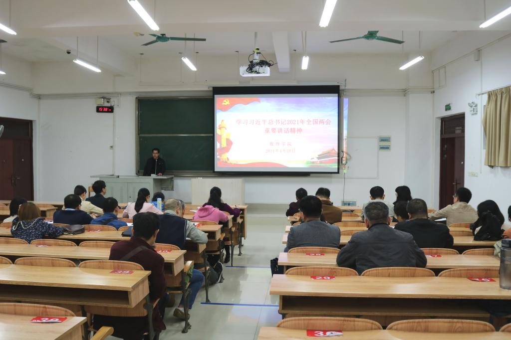 此次两会精神专题学习会使全体教职工对“两会”精神有更进一步的理解和把握,更好促进学院教育各项工作的扎实开展。