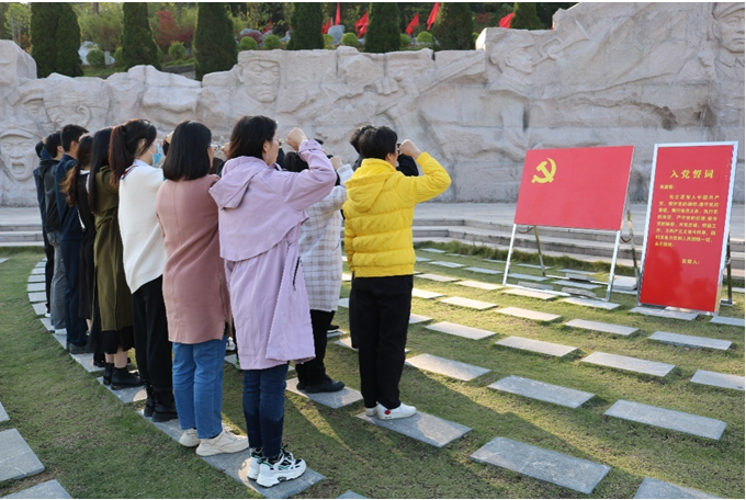 党史学习教育实践第一站,在红军长征湘江战役纪念林,全体师生党员向湘江战役红军烈士敬献花篮,表达了对红军烈士的崇高敬意和深切缅怀。随后,学院党委书记黄星寿带领全体人员重温入党誓词。走进湘江战役纪念馆,红色资料作品中爬雪山、过草地、飞夺泸定桥等一座座浮雕,彰显了红军将士视死如归、一往无前、敢于压倒一切困难而不被任何困难所压倒的崇高精神。大家深刻体会革命先烈英勇无畏,不怕牺牲的革命精神。