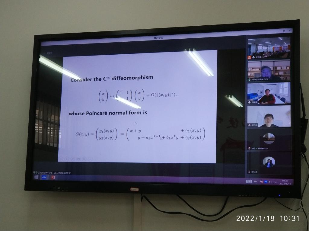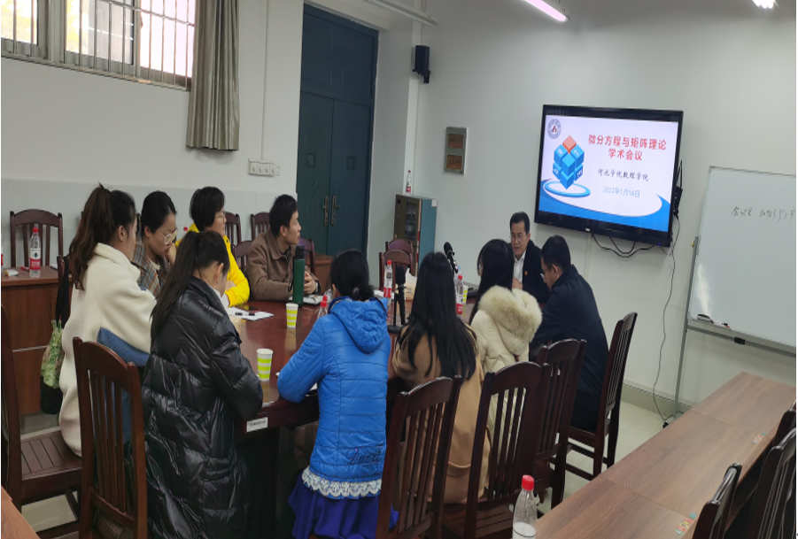 为了进一步提升新葡萄中青年教师团队的科研能力,营造勇于创新的浓厚学术氛围,2022年1月18日,在罗日才院长的组织下,新葡萄8883官网AMG中青年教师在逸夫楼203会议室成功举办“微分方程与矩阵理论”学术交流会。参加本次学术交流会的校外专家有四川大学数学学院院长博士生导师张伟年教授、山东师范大学数统学院院长博士生导师李晓迪教授、澳大利亚科廷科技大学许弘雷教授、广西民族大学理学院院长刘晓冀教授等十位教授。