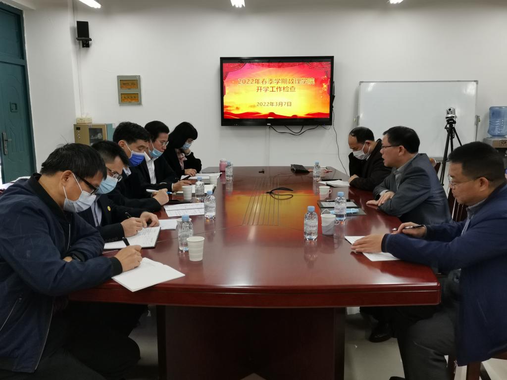 在检查过程中,韦文广副校长一行走进课堂,检查了师生线下授课第一天的精神风貌,随后在学院203会议室进行了座谈。