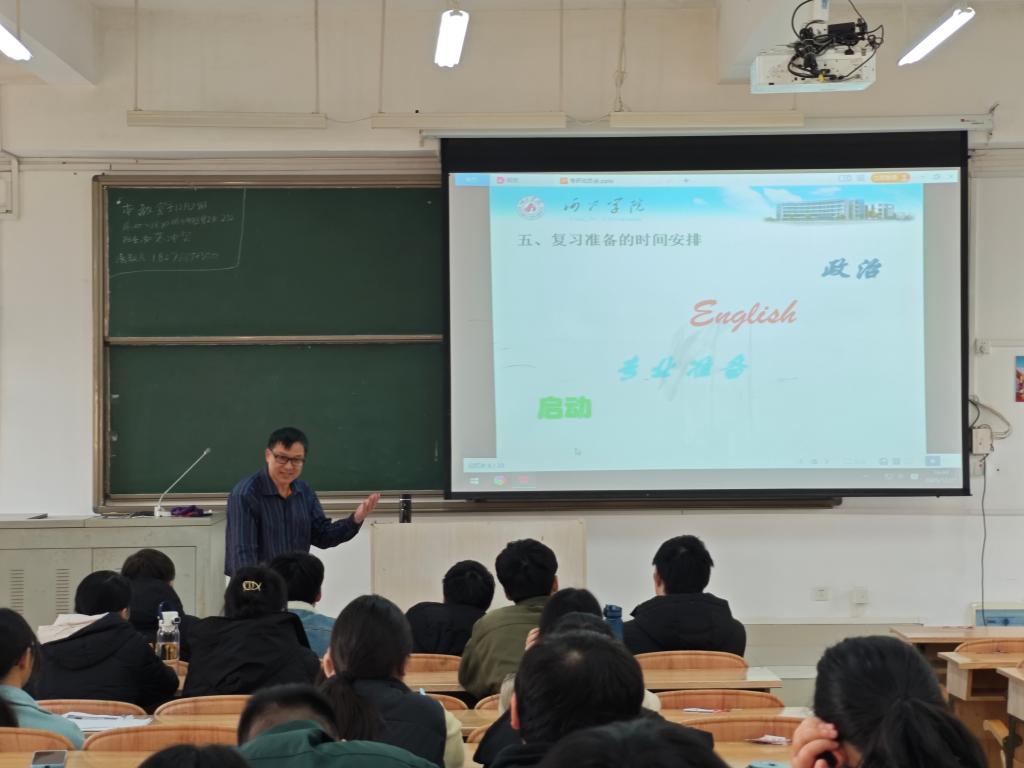 动员会上,韦玉程向同学们介绍了当前全国考研形势,强调了考研对于个人发展和职业规划的重要性,并分别就考研目标、复习规划、学习方法、资源整合、心理调节等方面给予详细指导。同时表示,同学们制定考研规划时应结合自身实际情况,综合考量考试科目、复习重点、时间分配等因素,科学选择目标,合理分配时间,将时间与精力用在“刀刃”上,真正做到有的放矢,精准备考。