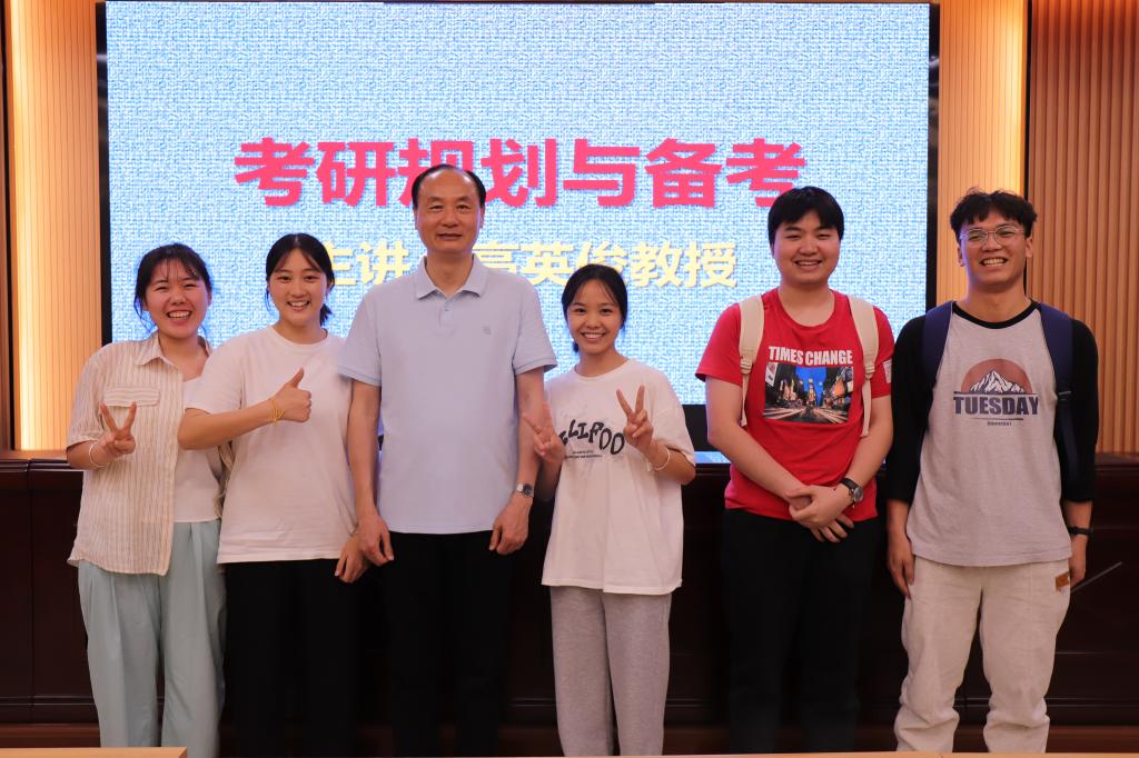 高英俊教授围绕大学的专业学习规划、考研目标设定、报考学校和专业的选择、考研的复习准备工作、考研成功的条件等五个方面为在场的学生提供了宝贵的建议。讲座伊始,高教授便对当前的考研形势进行了深入剖析,指出考研对于学子们未来发展的重要性。接着,高教授从考研的准备工作入手,详细阐述了考研规划的重要性。他强调,同学们要充分了解自己的兴趣、能力和专业方向,制定合理的考研目标,并根据目标制定详细的复习计划。最后,高教授还分享了一些考研备考的实用技巧。他建议同学们在备考过程中要注重基础知识的巩固和拓展,多做真题,提高解题能力。整个讲座现场气氛热烈,掌声不断。