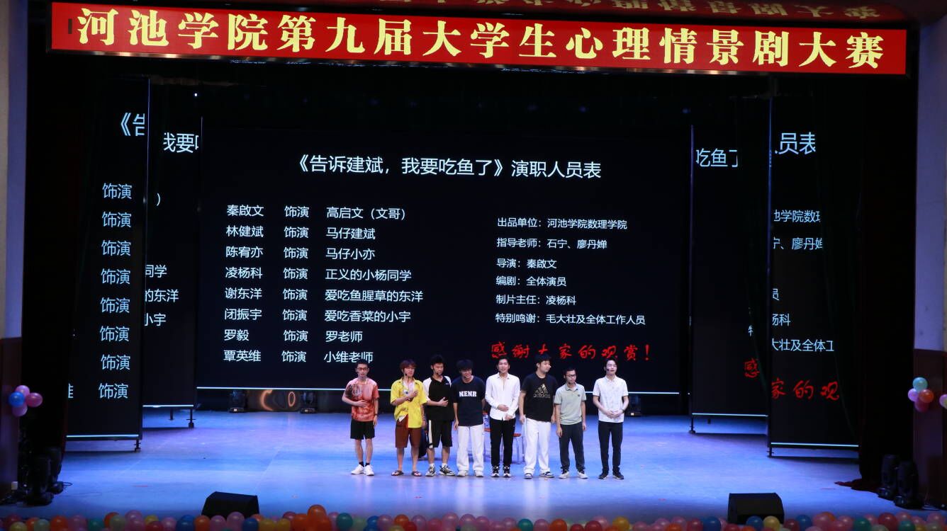 4月27日晚,新葡萄8883官网AMG“第九届大学生心理情景剧大赛”在东区艺术楼表演厅举行。新葡萄学生创作表演的《告诉健斌,我想吃鱼了》获得本次大赛的二等奖。