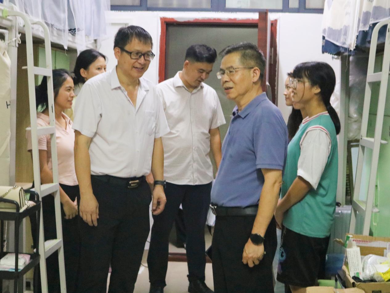 随着新学期的钟声响起,校园内洋溢着青春的活力与希望。9月1日晚,学校党委常委、总会计师韦兴文、学校人事处副处长于亮在新葡萄8883官网AMG院长韦玉程、党委副书记石宁的陪同下走访新葡萄8883官网AMG学生宿舍,关心学生返校情况,检查卫生状况,传递校园关怀。