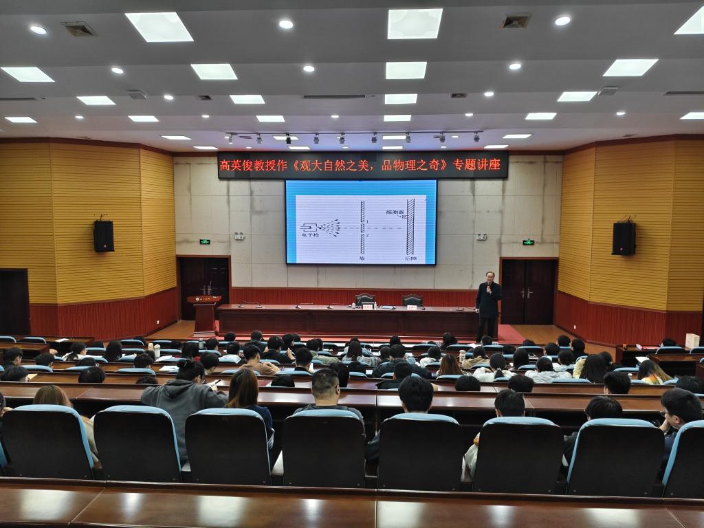 讲座开始,高英俊教授以自然界的物理现象为切入点,通过光波的折射、声波的共振等生动实例,引领学生感受物理学与自然之美交融的独特魅力。在经典物理领域,高教授以滑翔伞的流体力学原理为案例,剖析伯努利定律的实际应用;通过重现电子双缝干涉实验,揭示波粒二象性背后深奥的科学本质。这种由现象到本质的讲解方式,不仅强化了学生对理论知识的理解,更重塑了其科学认知体系。