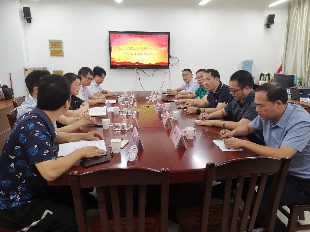 6月15日下午,罗城仫佬族自治县高级中学党委书记、副校长韦锦贵一行5人来新葡萄8883官网AMG调研交流,学院领导班子、继续教育学院院长罗日才、科学技术管理处副处长覃国乐参加调研交流。交流座谈会在逸夫楼203会议室举行。