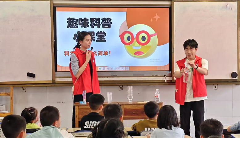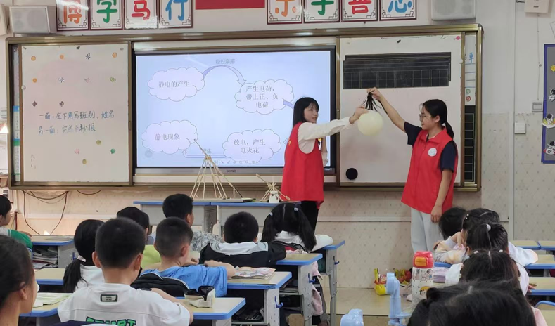 为深入学习贯彻党的二十届三中全会精神,发挥党员先锋模范作用,3月26日下午,新葡萄8883官网AMG学生第二党支部走进宜州区第二小学,开展“探秘物理奥秘 点亮科技梦想”主题党日活动,为一年级全体学生带来了一场生动有趣的物理科学启蒙课。